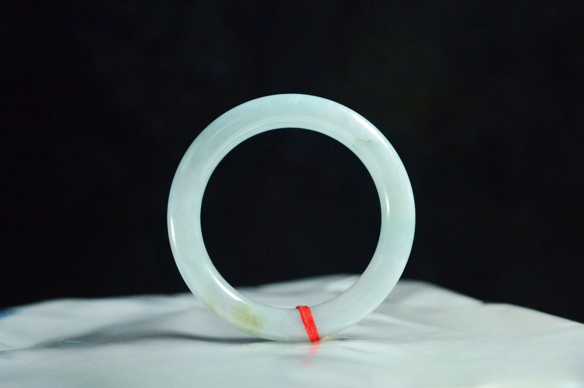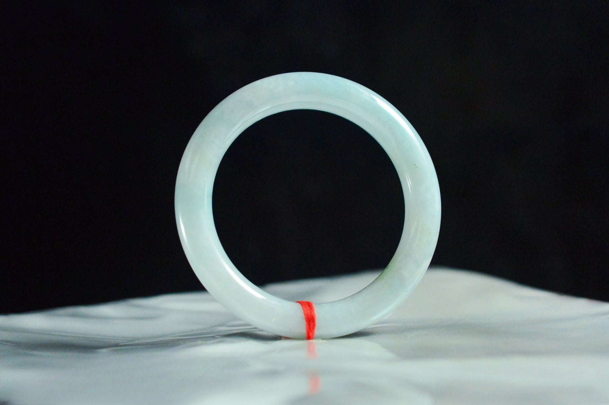 Waxy Icy Base Floating Flower Round Jade Bangle