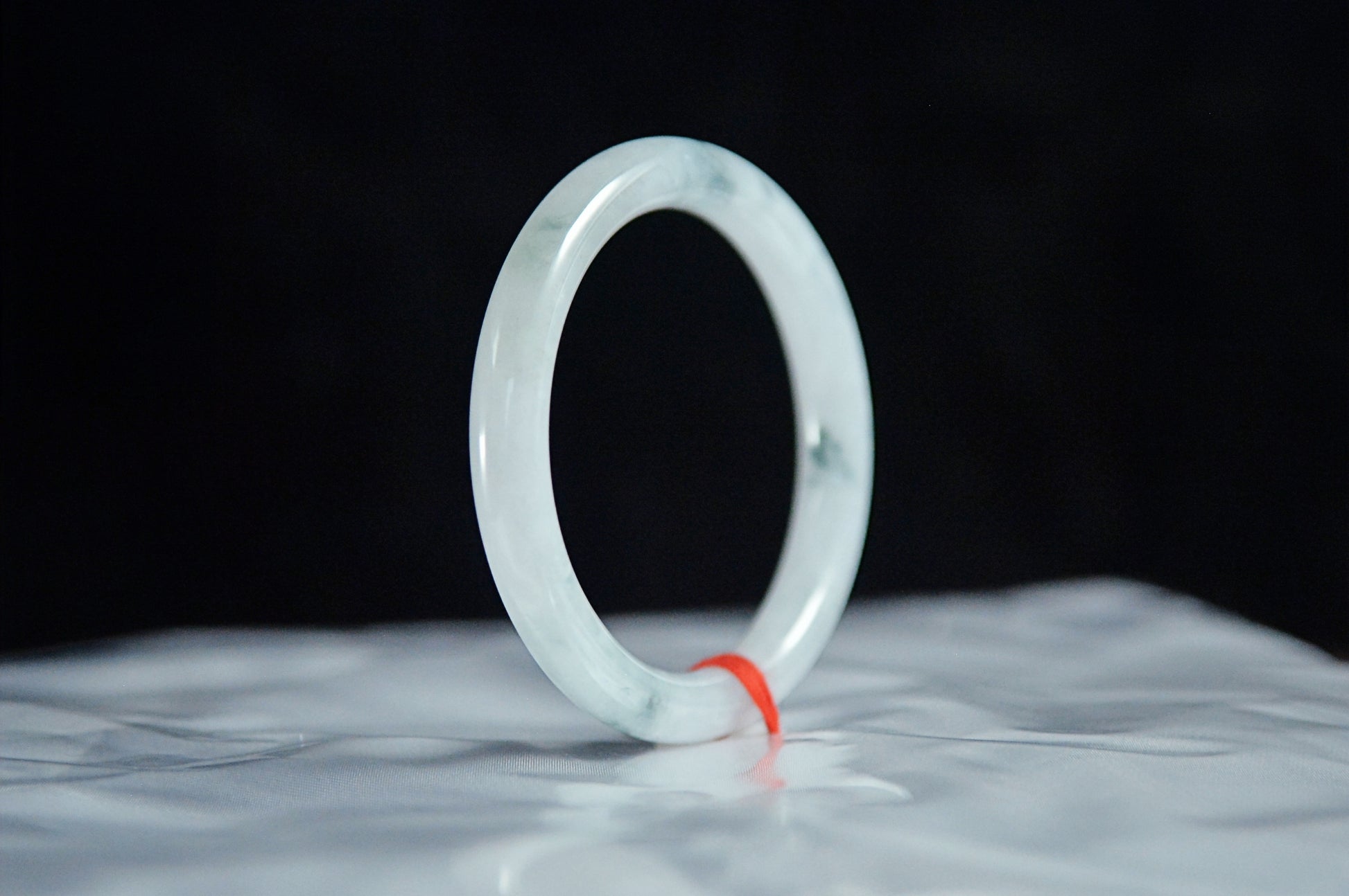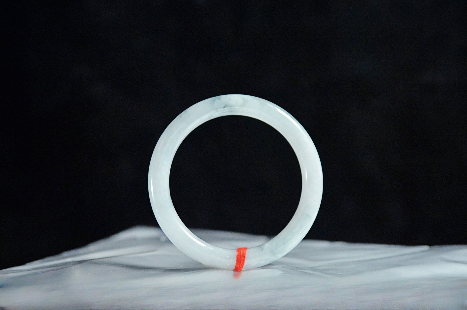 Waxy Icy Clear Base Floating Flower Jade Bangle