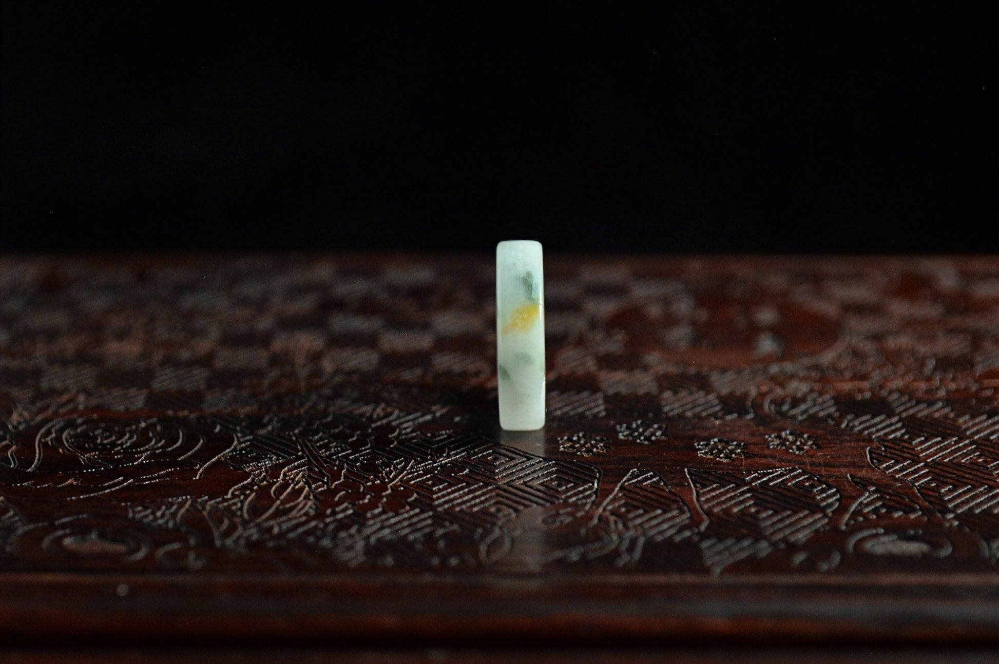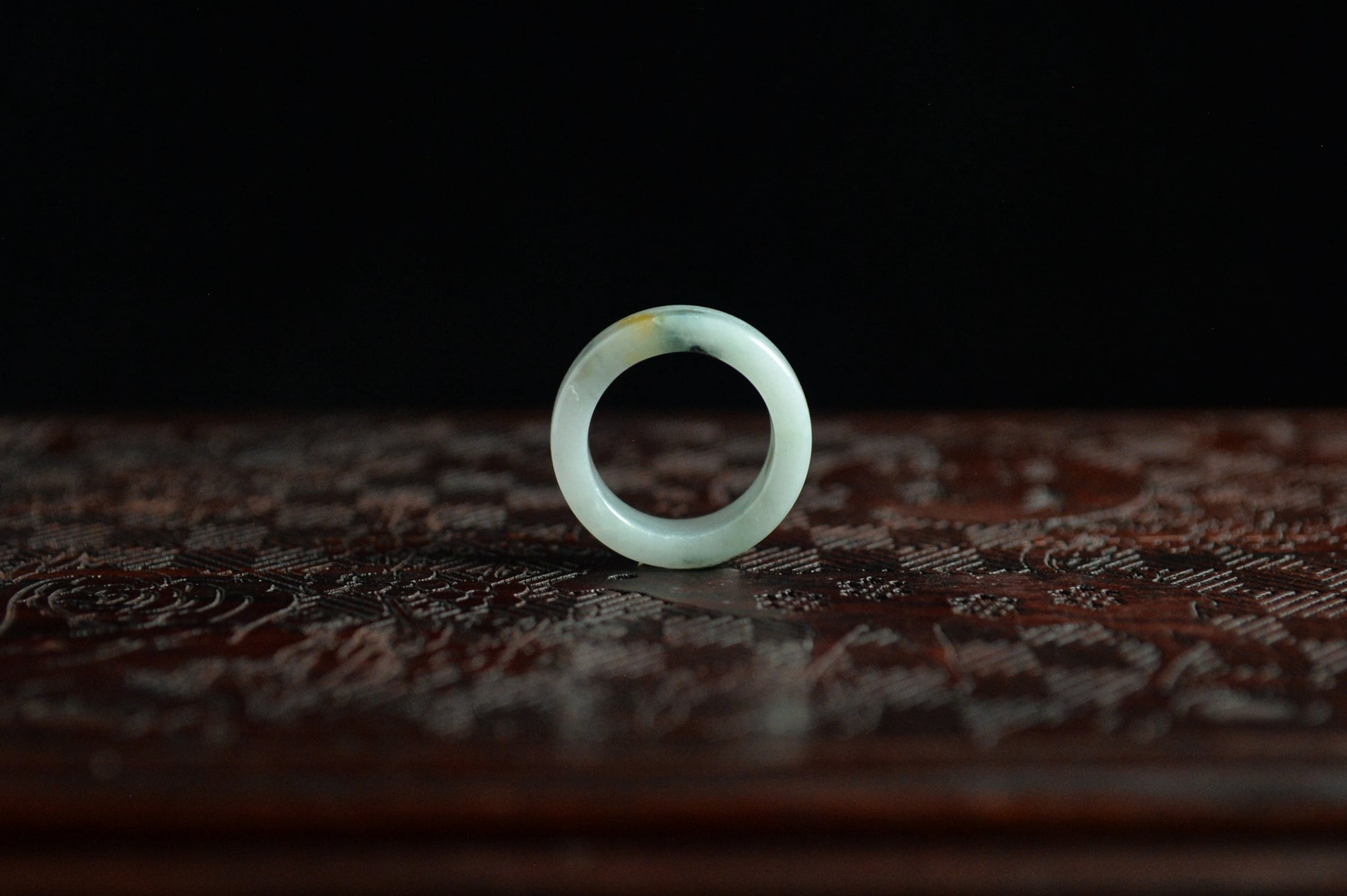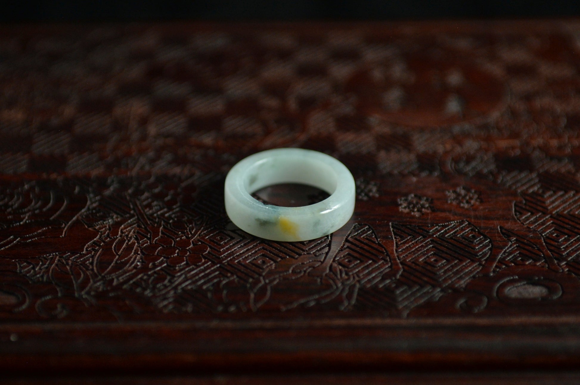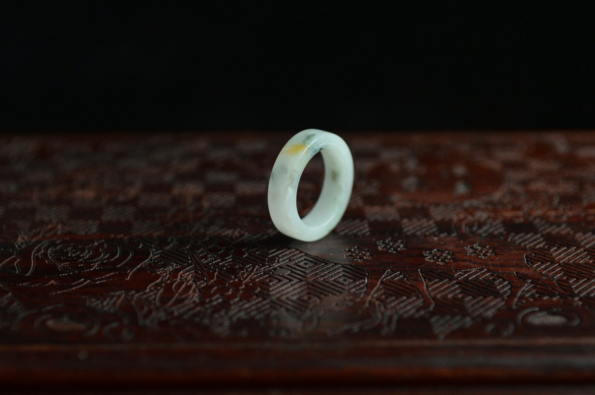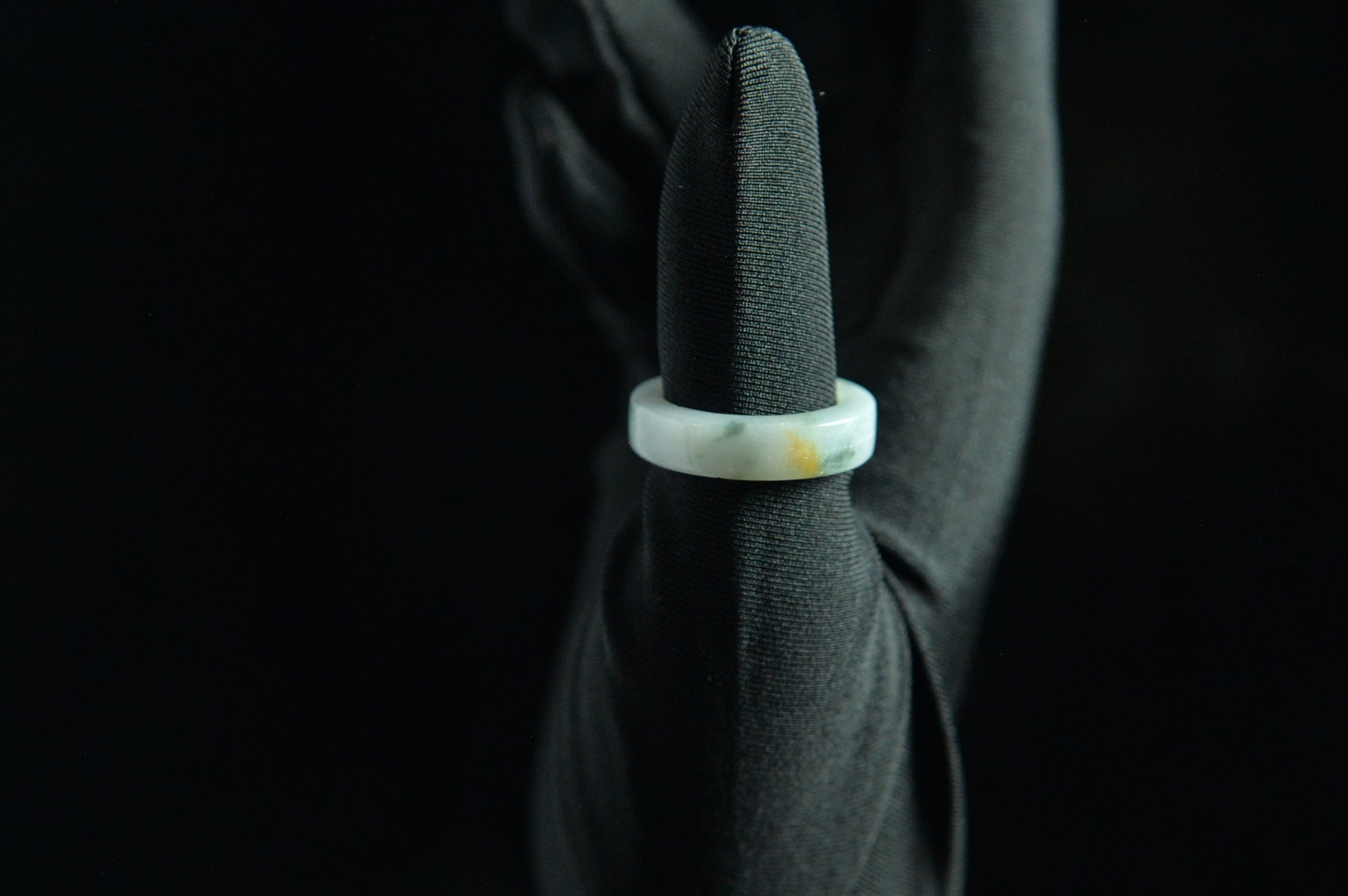 White Yellow Green Spot Jade Ring