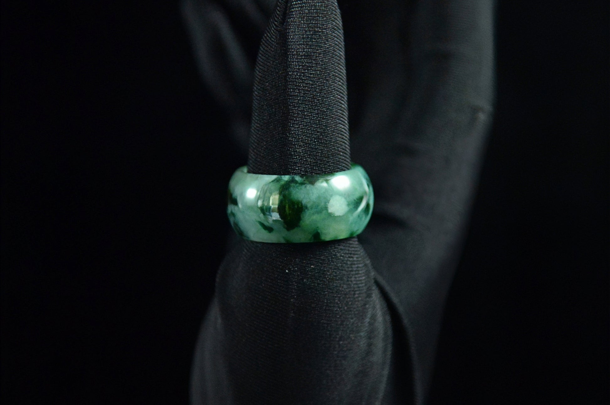 Icy Waxy Type Floral Cyan Jade Vivid Green Floating Flower Ring